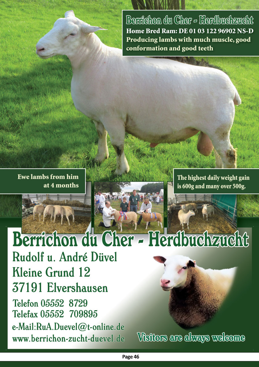 Berrichon du CherMaedi-Visna unverdächtiger und TSE-resistenter Schafzuchtbetrieb Rudolf und Andre Düvel Fotos ZURÜCK |
